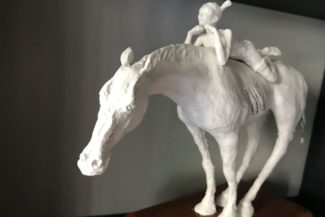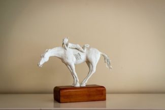 At serisinde, iskeleti  oluşturmak için atölyedeki tel atıklarını, gazete kağıtlarını ve tutkal kullandım. Heykelin kaidesini atölyedeki atık masif ahşaplardan yaptım. Heykelin ana maddesi ise kil hamuru.