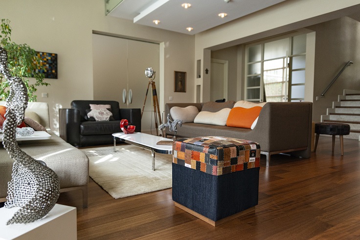 Bu modelde üst tamamen jakron (etiket), yan yüzler yarı jakton, yarı denim, baza masif ahşaptır.