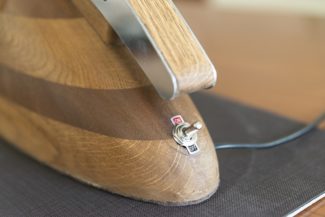 Aydınlatmanın ayağında meşe ve maun iki ayrı ahşap kullanılarak çizgisel bir hareket yaratıldı.