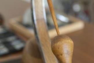 Uzun zamandır sakladığım ve bir tasarımda değerlendirmeyi istediğim “öreke” yi aydınlatmanın hareketli aksamında kullandım. Öreke, eskiden köylerde elde yün eğirmekte kullanılan bir alettir.