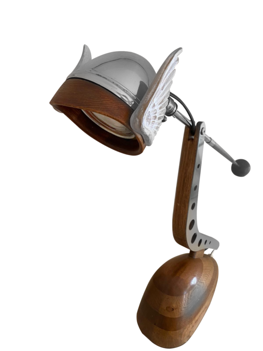Farın iki yanına kanat ekleyerek Zeus’un oğlu Hermes’ in kanatlı başlığına gönderme yaptım. Haberci tanrı Hermes hızını kanatlı başlığından alırmış. Ayrıca yolunu kaybedenlere kılavuzluk edermiş. Araba farını bize ışığı ile yol göstermesini hayal ettiğim Hermes’ in kanatlı başlığına dönüştürdüm. İşlemesi kolay, hafif ve yumuşak Ayous ağacını elde yontarak kanatları oluşturdum.