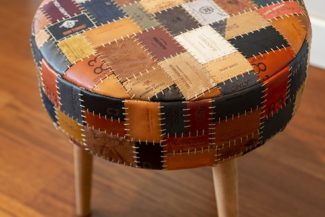 Etiketleri renk ve ebat uyumuna göre dizerek döşeme bezine yapıştırdım. Etiketleri birbirine tutturabilmek için her etikete yaklaşık 20 delik açtım. Bir yüzde ortalama 50 etiket olduğunu düşünürsek, toplam 1000 deliği elde açmış oldum. Fotoğraftaki puf 5 yüzden oluşuyor yani 5000 delik!